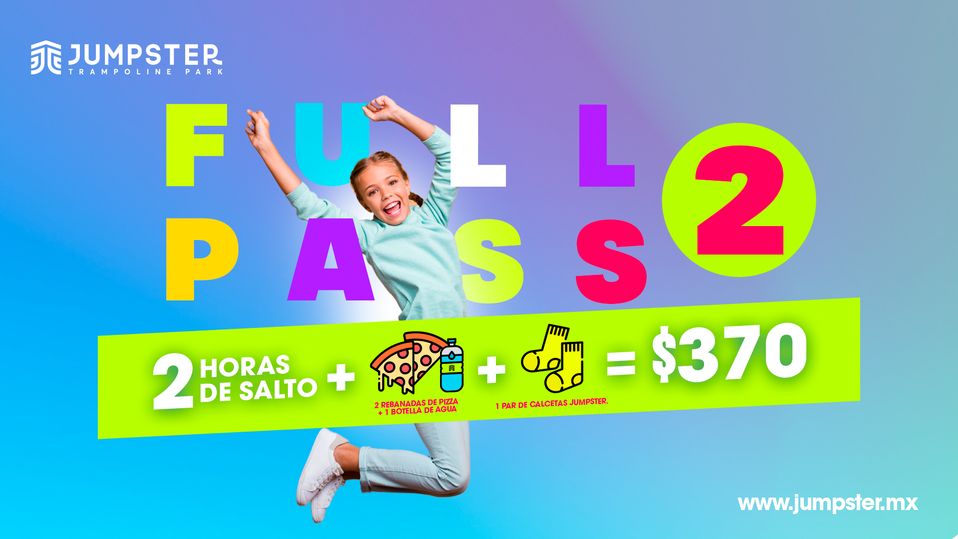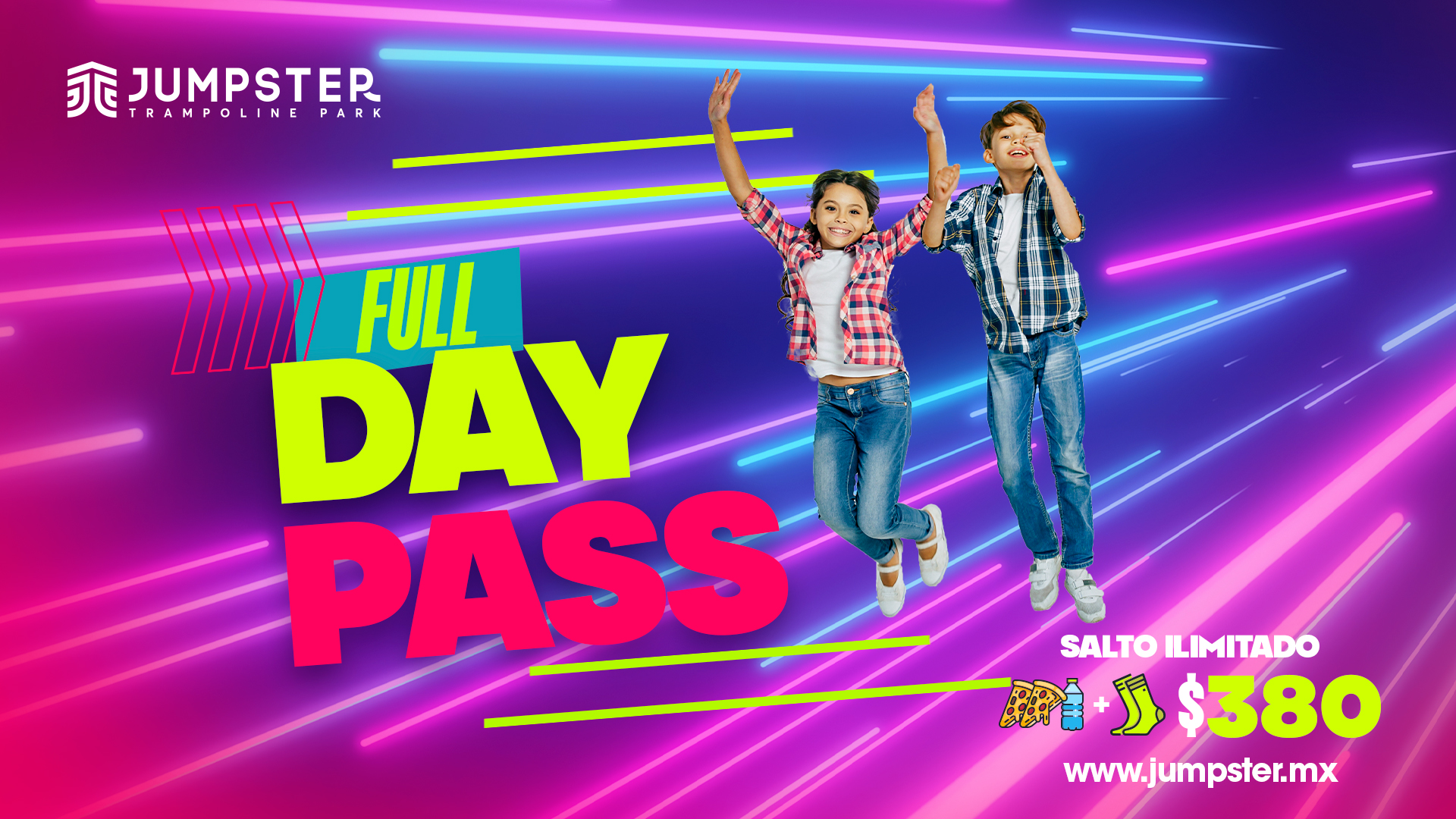 Vive la experiencia completa Jumpster en un solo paquete. Es la opción ideal para venir, brincar sin parar